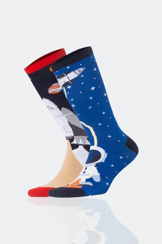 Aytuğ Space-Print Unisex-Socken aus Baumwolle, atmungsaktiv, 35–46, Geschenk